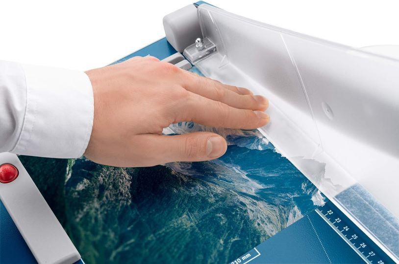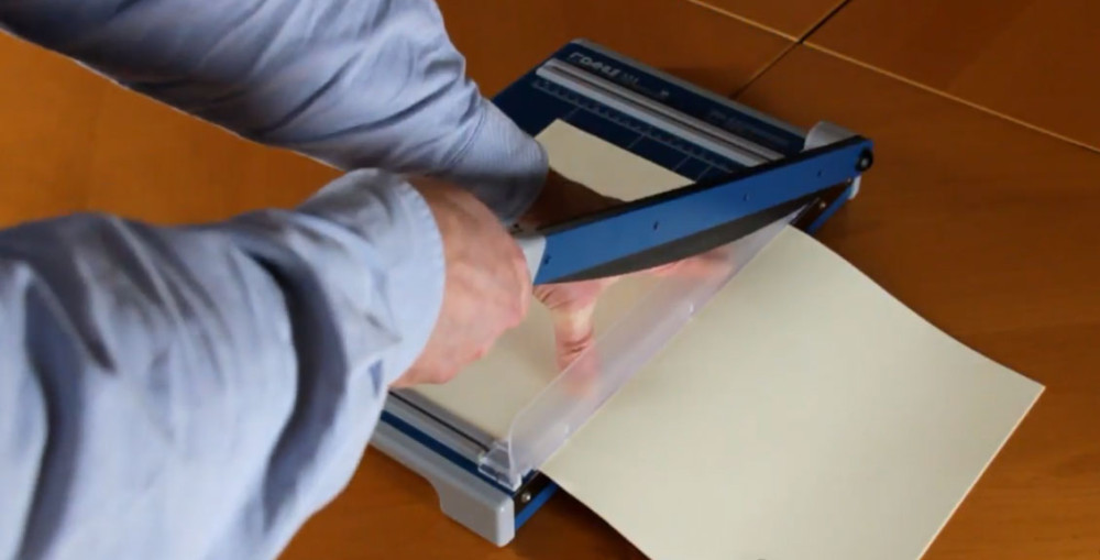 Egyszerre akár 15 lapot is tud vele vágni, a védőburkolat helyén tartja a lapokat.
