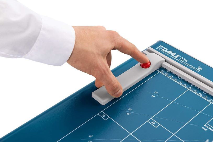 Dahle 534 karos, A/3-as professzionális papírvágógép, méretskálás fém vágóasztallal, papírlapok darabolására, méretre vágására.