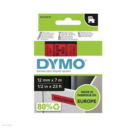 Betűnyomó kazetta gépi 12mmx7m Dymo fek-piros