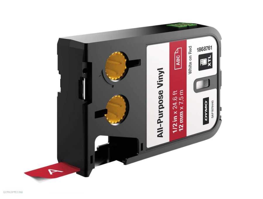 Betűnyomó kazetta gépi XTL 12mm Dymo sokcélú vinil, fehér-piros