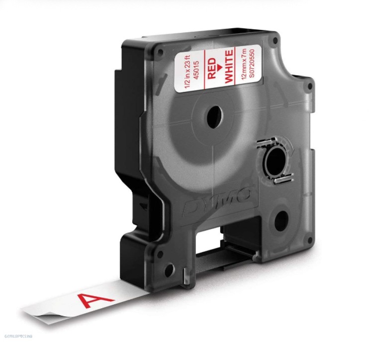 Betűnyomó kazetta gépi 12mmx7m Dymo piros-fehér 45015