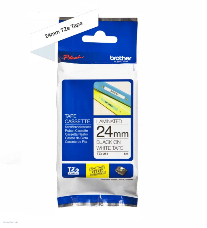 Brother TZe-251 Fehér alapon fekete laminélt szalag, 24 mm széles