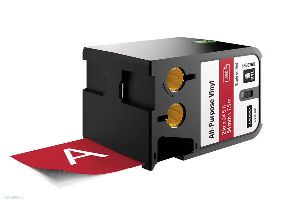 Betűnyomó kazetta gépi XTL 54mm Dymo sokcélú vinil, fehér-piros