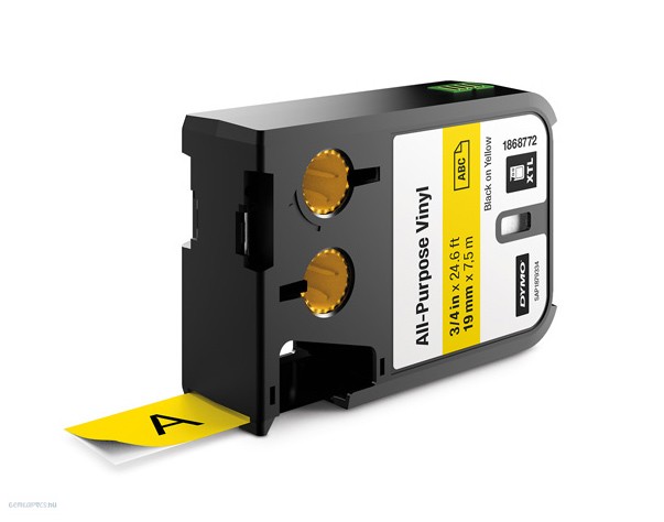 Betűnyomó kazetta gépi XTL 19mm Dymo sokcélú vinil, fekete-sárga