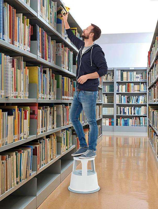 Rendkívül könnyen mozgatható, három kis keréken guruló fellépőzsámoly.