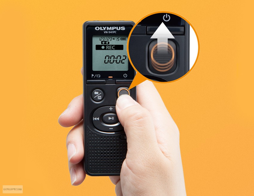 Csak csúsztassa el a REC kapcsolót - és a hangrögzítő azonnal indítja a felvételt, még kikapcsolt állapotban is.