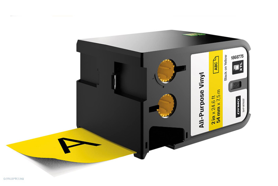 Betűnyomó kazetta gépi XTL 54mm Dymo sokcélú vinil, fekete-sárga