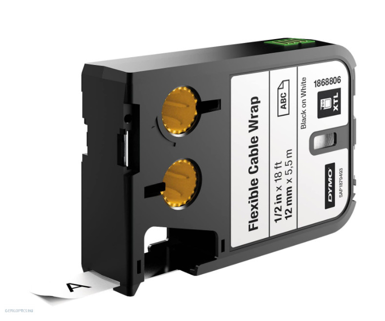 Betűnyomó kazetta gépi XTL 12mm Dymo rugalmas kábelburkoló nylon, fekete-fehér