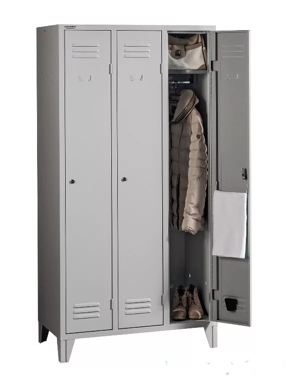 Fém öltözőszekrény Project, 3 hosszúajtós, lábakon álló