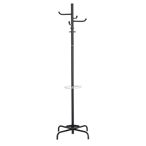 Porszórt festett felületű, formahajlított és hegesztett, stabil fémvázú állófogas krómozott felületű esernyőtartó fémgyűrűvel, fekete színű műanyag csepptálcával, műanyag csúszó-talpakkal a padló védelme érdekeben.