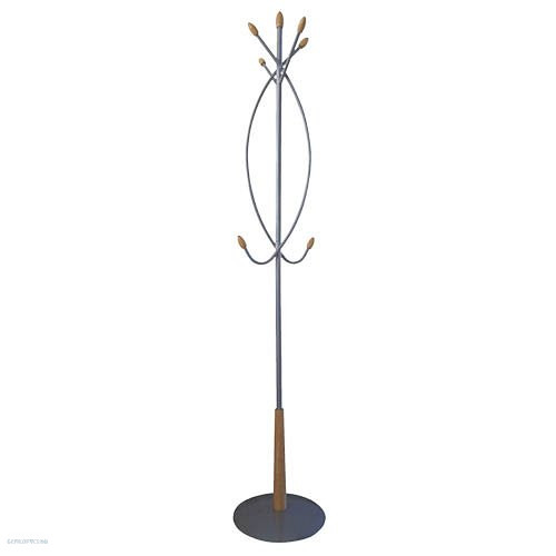 Fém állófogas 182 cm magassággal, ezüstszürke színben, natúr színre pácolt fa elemek.