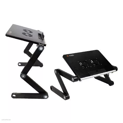 Hűtőállvány notebookokhoz 17” méretig. Alumíniumtest és két 80 mm ventilátor biztosítja a megfelelő hőelvezetést és készüléke optimális hűtését. Az összesen hat elforgatható csukló (360°) lehetővé teszi a notebook optimális helyzetbe állítását munkához vagy szórakozáshoz, és nagy stabilitást biztosít enyhén egyenetlen felületen is. Az állvány nagyon könnyen állítható különböző magasságba és betekintési szögbe, ami kiváló segédeszközzé teszi akár a nappaliban, akár a hálószobában, a dolgozószobában vagy a szabadban. A könnyű alumínium szerkezetnek köszönhetően az állvány könnyen hordozható, csekély súlyát és méreteit pedig tároláskor vagy utazáskor fogod értékelni. Méret kinyitva: 480x280x40 mm. Munkafelület méret: 350x260x15 mm. Magasság: 40~465 mm. Zajszint: <25 dBa. Üzemi feszültség: 5 VDC. Súly: 1060 g.