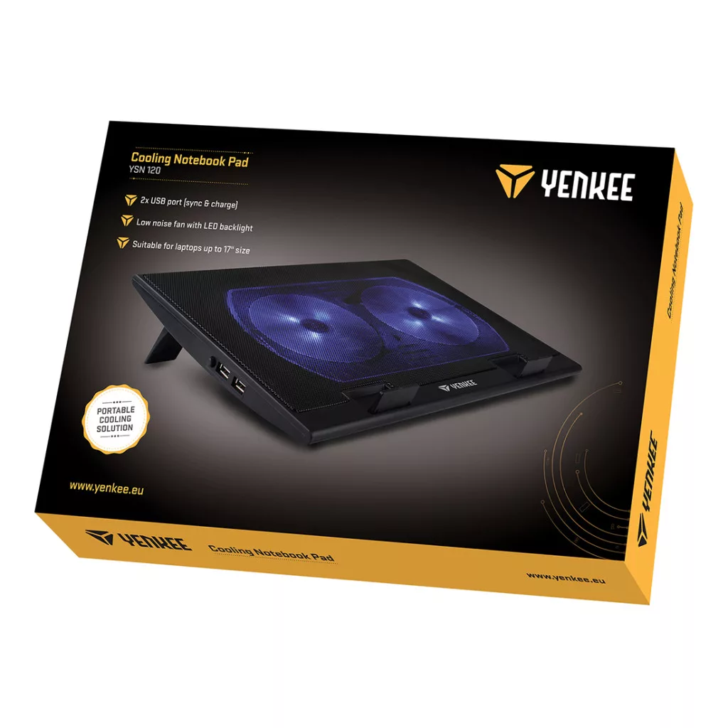 A Yenkee YSN 120 egy vékony és elegáns hűtőállvány legfeljebb 17 hüvelykes hordozható számítógépekhez. Ergonomikus kialakításának köszönhetően kényelmesen használható asztalnál ülve, vagy akár heverőn és ágyban pihenve is. Az alacsony súly és a kompakt méretek révén könnyen hordozható és bárhol használható.