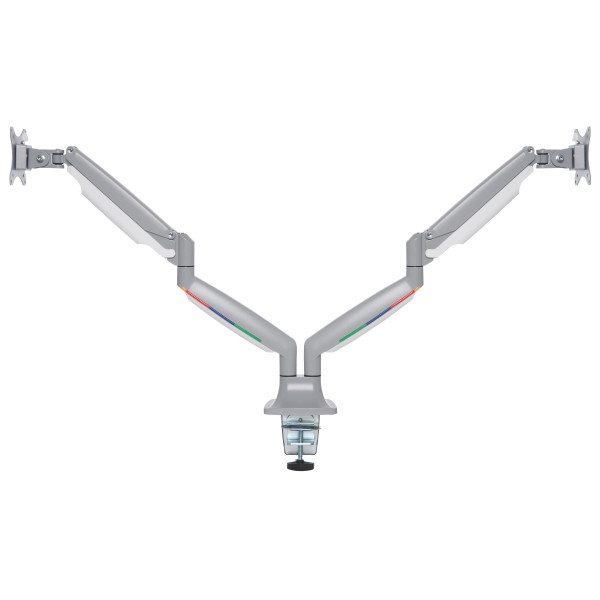 Egy mozdulattal állítható monitorkar két monitor számára, a beépített gázrugóval könnyen beállítható a kívánt magasság (170-505 mm között).
