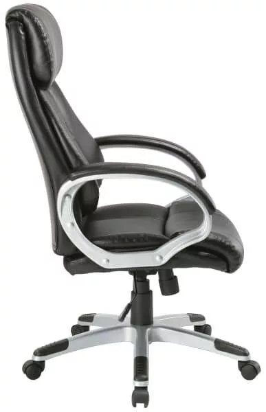 Puha fekete textilbőrrel borított ülőfelület és magas háttámla nyaktámasszal.