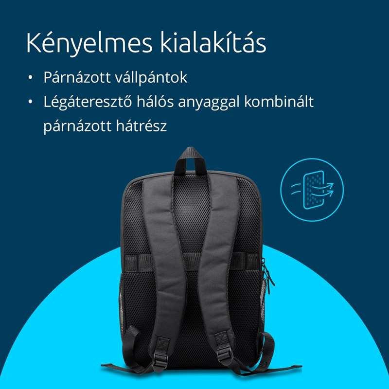 Ez a modern és könnyű hátizsák párnázott rekesszel rendelkezik a laptop védelmére, valamint egy cipzáras elülső rekesszel, amely könnyű hozzáférést biztosít a perifériákhoz. Két oldalzsebbel vizes palackok és esernyő tárolására. A párnázott vállpántok, valamint a légáteresztő hálós anyaggal kombinált párnázott hátrész kényelmes tartást biztosít a hátnak, a nyaknak és a vállaknak.