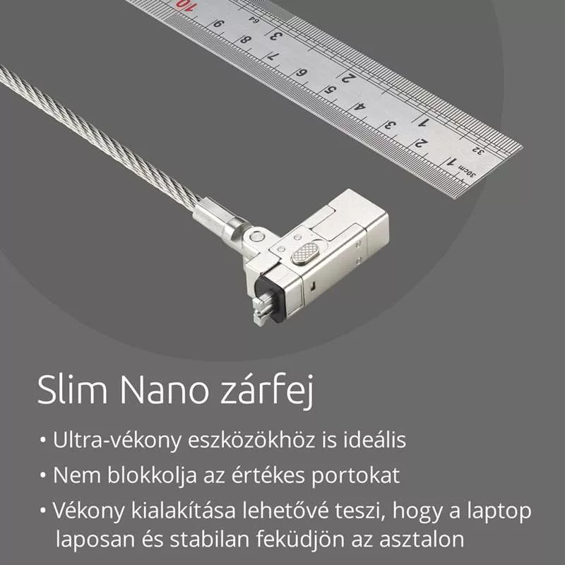 Támogatja a nano lock foglalattal rendelkező ultra-vékony eszközöket. Az alacsony profilú zárfej nem blokkolja az I/O portokat, és lehetővé teszi, hogy az eszköz laposan és stabilan feküdjön.