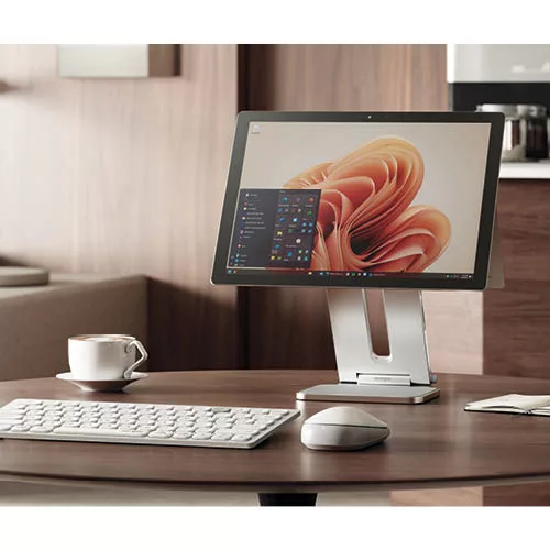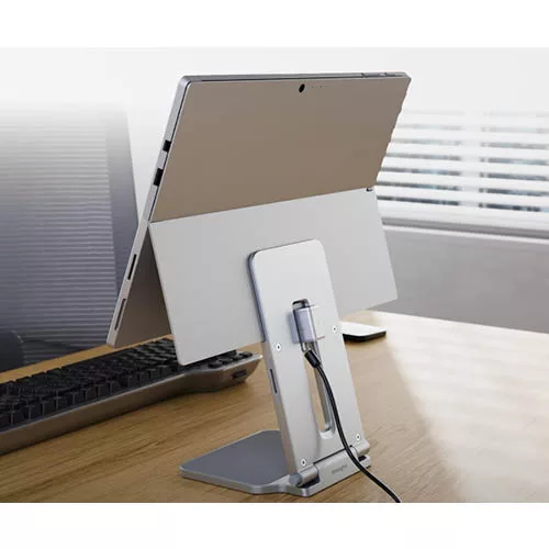 A Kensington Surface karcsú és kompakt notebookállványt a Microsoft-tal együttműködve úgy tervezték, hogy tökéletesen illeszkedjen a Surface Pro vagy Surface Go készülékhez. Ergonomikus kialakítás. Ráadásul a dönthető funkció biztosítja az optimális szöget a kényelmes képernyő megtekintéséhez. Kompakt és hordozható.