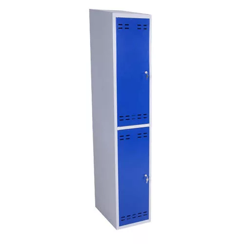Intra fém öltözőszekrény 2 rekeszes modell, kék/szürke színben, lapraszerelt kiszereléssel. Szerszám nélkül is összeszerelhető.