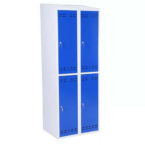 Intra fém öltözőszekrény 4 rekeszes modell, kék/szürke színben, lapraszerelt kiszereléssel. Szerszám nélkül is összeszerelhető.