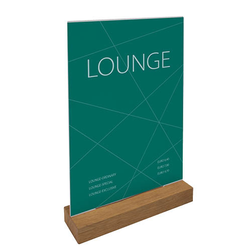 Kétoldalas, álló asztali laptartó, tömör tölgyfa alappal, amely 100%-ban FSC.