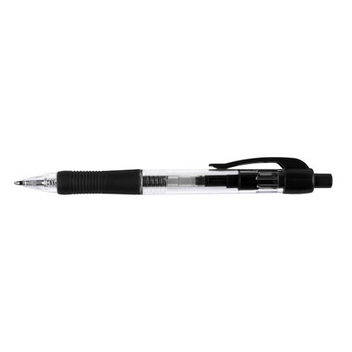 Műanyag testű, nyomógombos golyósirón gumi fogórésszel.