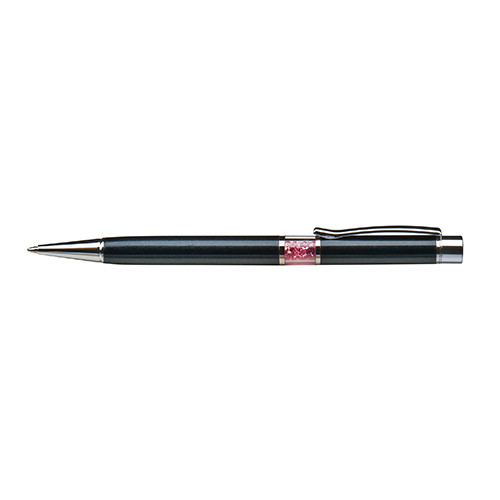 Golyósirón középen SWAROVSKI® kristályokkal töltve fekete tolltest 13 cm rózsaszín