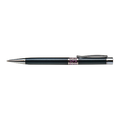 Golyósirón középen SWAROVSKI® kristályokkal töltve fekete tolltest 13 cm bíbor lila