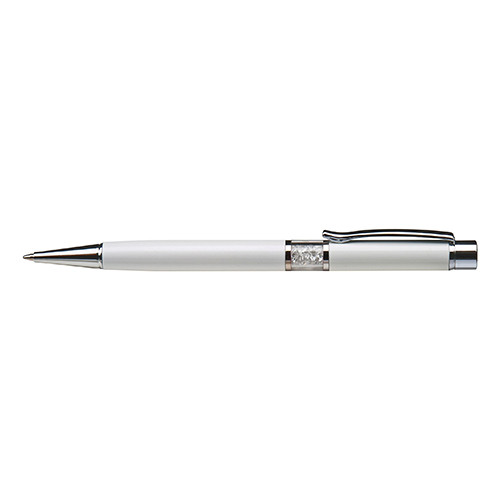 Golyósirón középen SWAROVSKI® kristályokkal töltve fehér tolltest 13 cm fehér