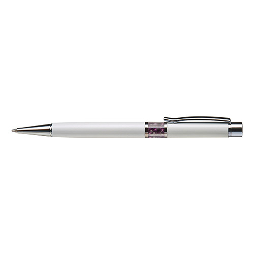 Golyósirón középen SWAROVSKI® kristályokkal töltve fehér tolltest 13 cm bíbor lila
