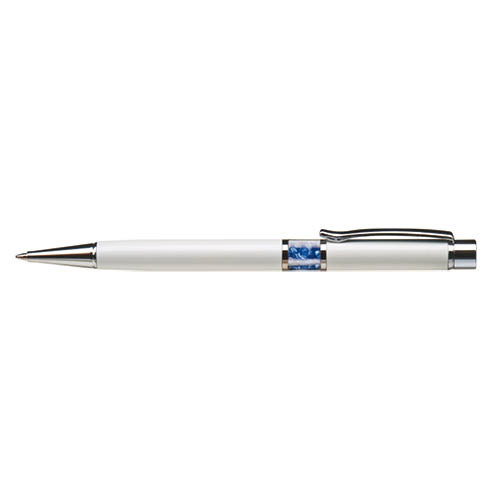 Golyósirón középen SWAROVSKI® kristályokkal töltve fehér tolltest 13 cm zafírkék