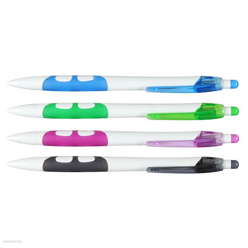 A a mechanikus ceruza műanyag burkolattal, gumírozott fogózónával bír a kényelmes használatért.