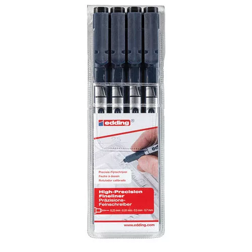 Tűfilc készlet 4 darabos, Edding 1880 Drowliner (0.1, 0.3, 0.5, 0.7 mm), műszaki, fekete