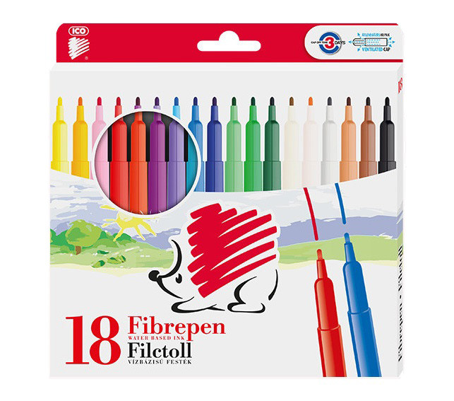 ICO Süni 300 általános használatú filctoll készlet írásra, rajzolásra, színezésre, vízbázisú festékkel töltve.