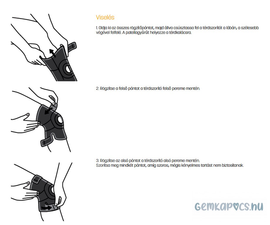 Gyűrődésmentes kialakítás, könnyen le- és felvehető, jobb és bal térdre egyaránt alkalmazható.
