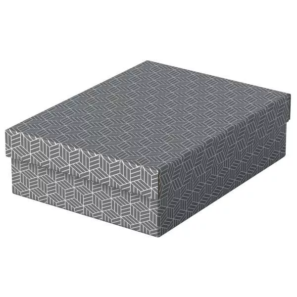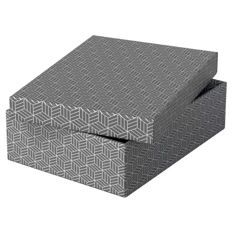 Dekoratív kartondoboz szett fehér és szürke színben dokumentumok és egyéb otthoni használati tárgyak tárolásához. Erős, 100%-ban újrahasznosított és 100%-ban újrahasznosítható, FSC minősített hullámkartonból.
