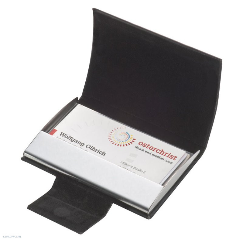 Névjegykártyatartó a névjegyek megfelelő tárolására. A tartó jó minőségű műbőrből, mágneszárral készült.