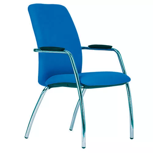 Krómozott acél vázú tárgyalószék magas háttámlával. Műanyag karfa, műanyag háttámla- és ülőlap burkolat. Rakásolható: 3 db-ig. Teherbírás: 110 kg.