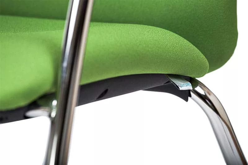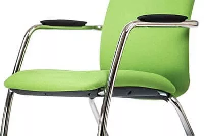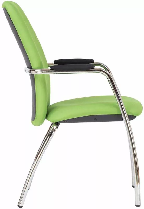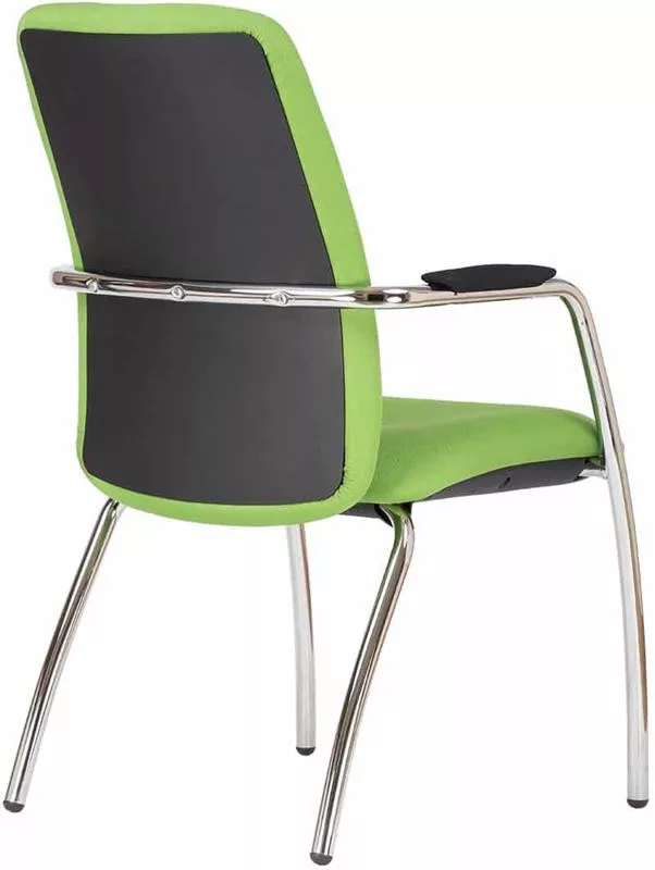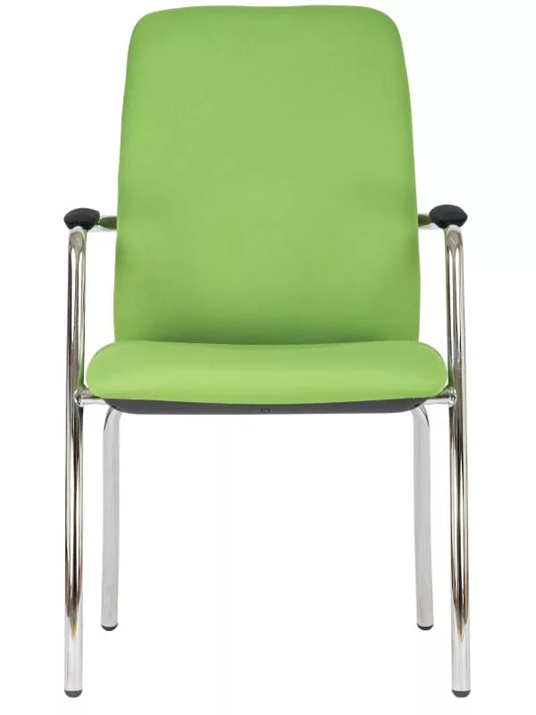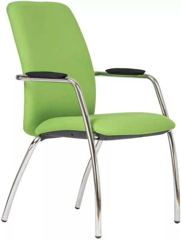 Krómozott acél vázú tárgyalószék magas háttámlával. Műanyag karfa, műanyag háttámla- és ülőlap burkolat. Rakásolható: 3 db-ig. Teherbírás: 110 kg.