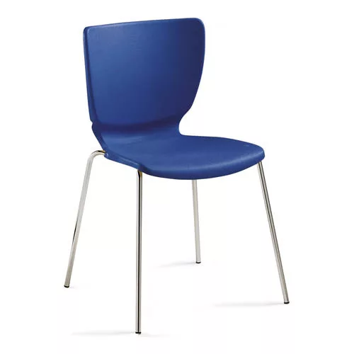 Krómozott vázú, műanyag kagylóülésú tárgyalószék. Választható színek: fehér, fekete, kék, szürke, világoszöld. Rakásolható. Teherbírás: 110 kg.