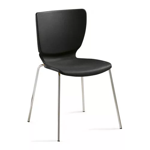 Krómozott vázú, műanyag kagylóülésú tárgyalószék. Választható színek: fehér, fekete, kék, szürke, világoszöld. Rakásolható. Teherbírás: 110 kg.