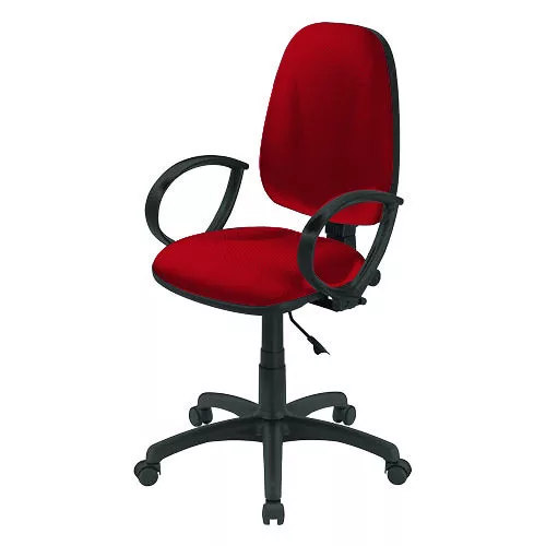Irodai forgószék nem gyulladó szövet kárpitozású háttámlával és ülőlappal. Fix műanyag karfa. Fokozatmentes ülésmagasság állítás. Önbeálló háttámla, dőlésszög állítás és rögzítés adott pozícióban.