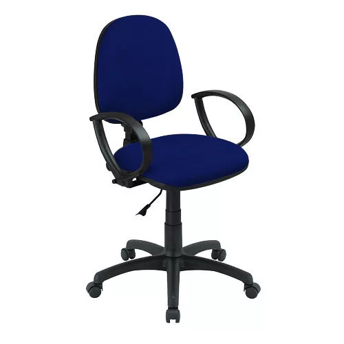 Irodai forgószék nem gyulladó szövet kárpitozású háttámlával és ülőlappal. Ergonómiailag formázott háttámla és ülőlap. Zárt kialakítású, fix műanyag karfa. Permanent contact mechanika. Fokozatmentes