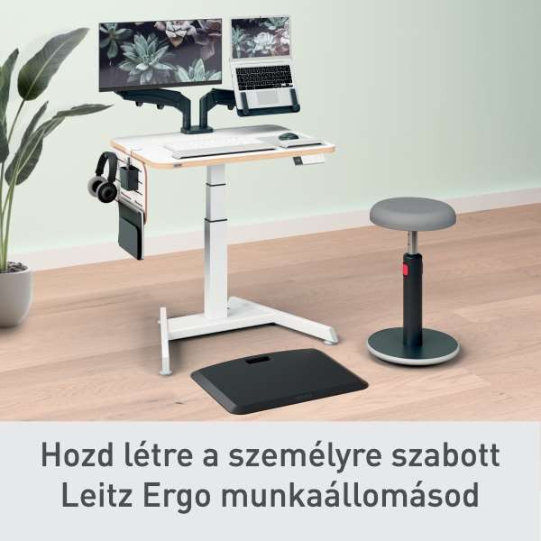 Ez a modern és minimalista lyukacsos rendszerező ideális otthonra vagy az irodába a kényelem és a termelékenység maximalizálása érdekében. Küldetésünk, hogy olyan megoldásokat kínáljunk, amelyek lehetővé teszik az irodai dolgozók számára, hogy a munkahelyükön és azon túl is jól érezzék magukat, elősegítve a pozitív mentális egészséget és a fizikai jóllétet. Más Leitz Ergo termékekkel kombinálva rugalmas és mozgásra ösztönző munkaállomást alakíthatsz ki. Maradj aktív és ÉREZD JÓL magad a Leitz segítségével.