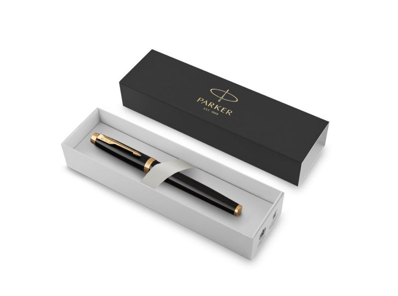 A tartós, lakkozott, fényes fekete tolltest és az aranyozott klipsz a Parker örökséget visszhangozzák, minden részletében az írás élményére törekedve.