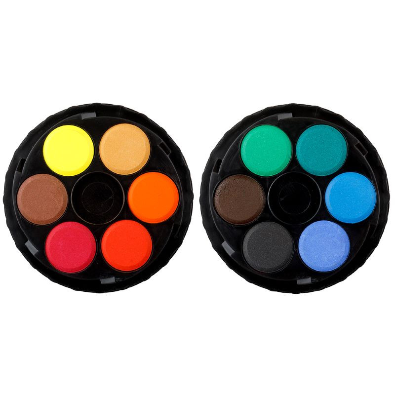 A Koh-i-Noor kerek, tizenkét színű vízfestékkészlete tökéletes választás iskolába vagy otthoni hobbi rajzolásra.