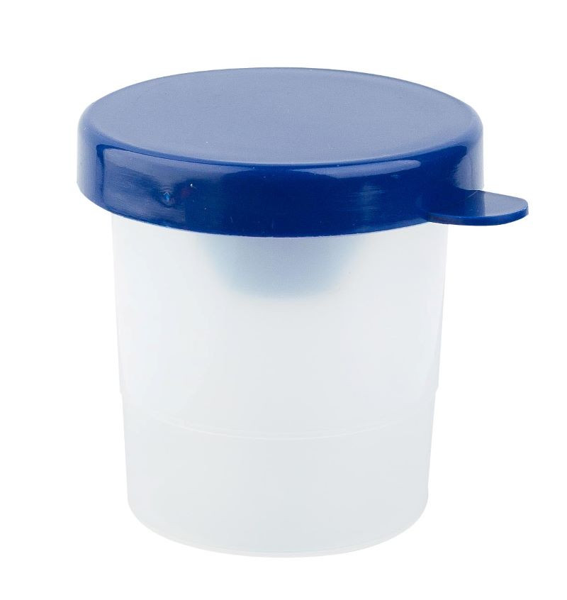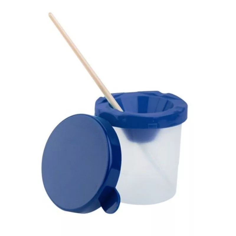 ICO műanyag ecsettál zárható fedéllel, amely megakadályozza a víz kiömlését.