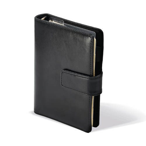Gyűrűs kalendárium Saturnus M223, fényes műbőr, fekete