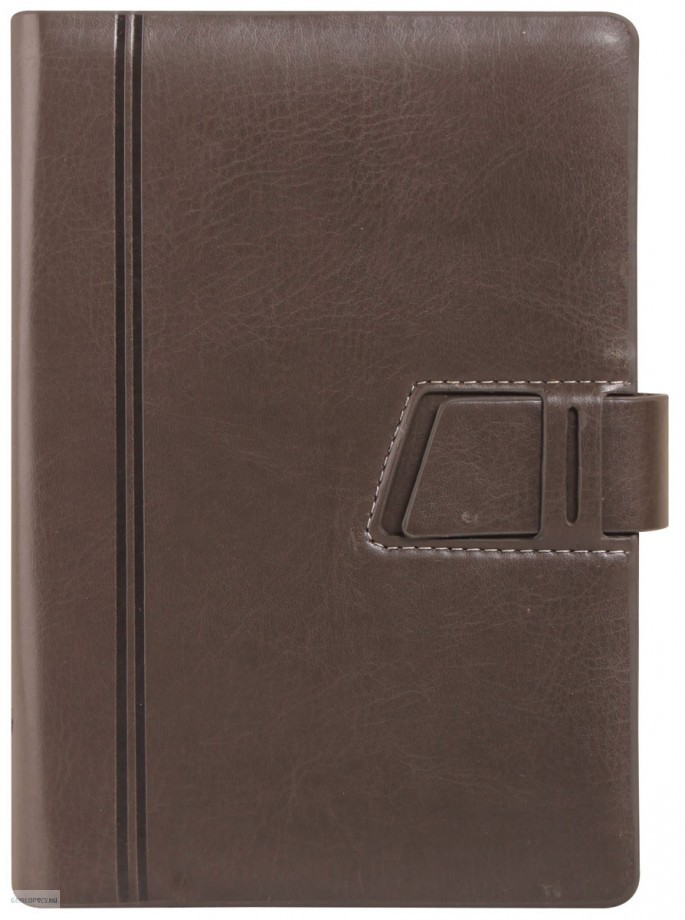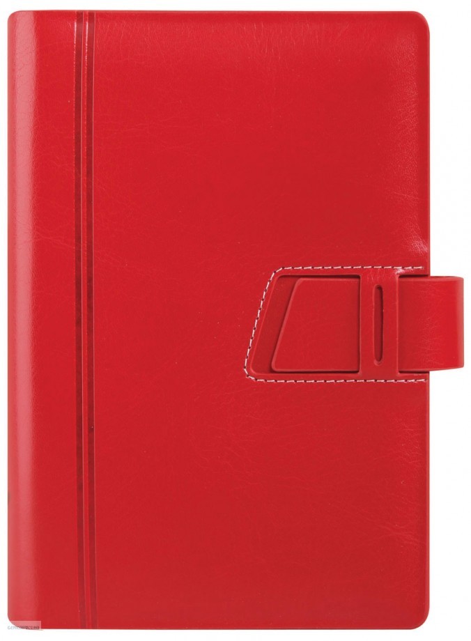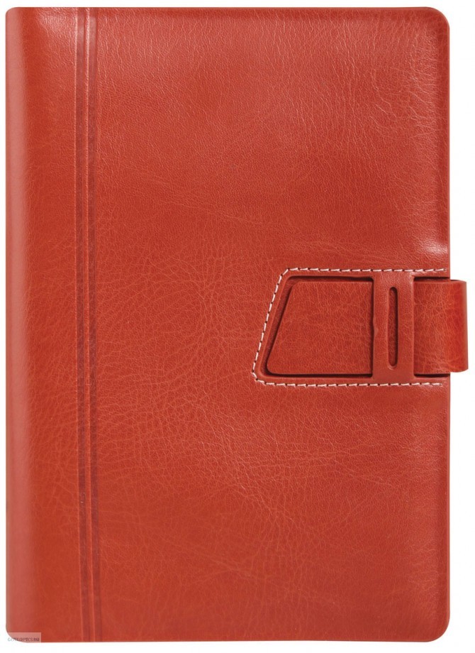 Saturnus elegáns, bőrhatású műbőrből készült, fehér varrással díszített, bedugófüllel záródó kalendárium.