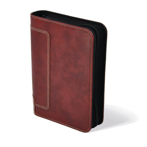 Sportos megjelenésű, prégelt felületű műbőrből, praktikus, cipzáras záródással készült Saturnus M227 kalendárium.